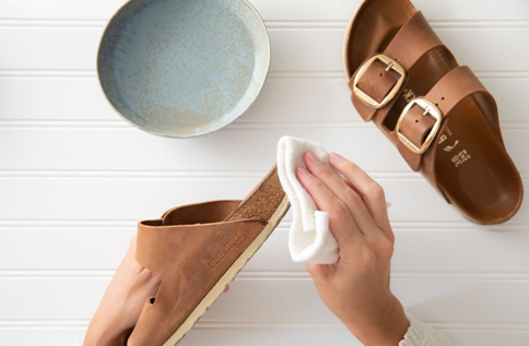 Apply the conditioner sparingly with a polishing cloth, using gentle and circular motions to massage it into the leather and nourish the material. Finally, use the Birkenstock Polishing Brush, which is perfect for buffing smooth leather to a glossy finish.